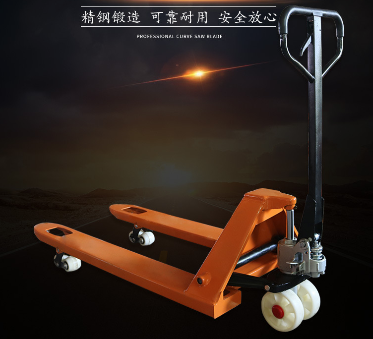手動液壓搬運車油缸選用高精密研磨管,進口油封,一體式閥芯,便利拆開和修理。腳踩方法,晉升速度流通,大大進步了安全性。